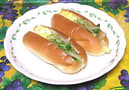 3.パンに切り目をいれマーガリンを塗り@とAをはさむ。