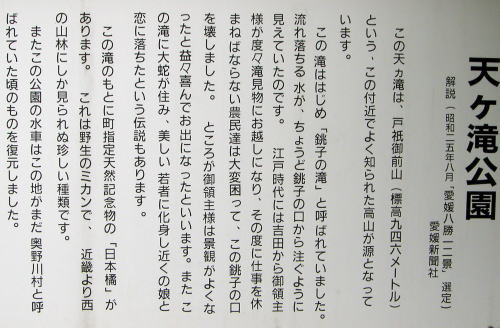 さびれた天ヶ滝公園のすぐそば。落差30m 別名/雨が滝