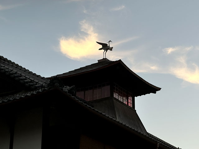 道後温泉本館の振鷺閣に白鷺がきのうも晴れやかに・・・