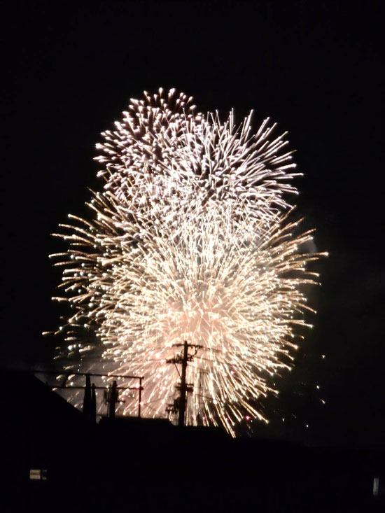 花火大会の夜、我が家までズシンとする大きな打ち上げ花火の音が聞こえ、主人が外に出て