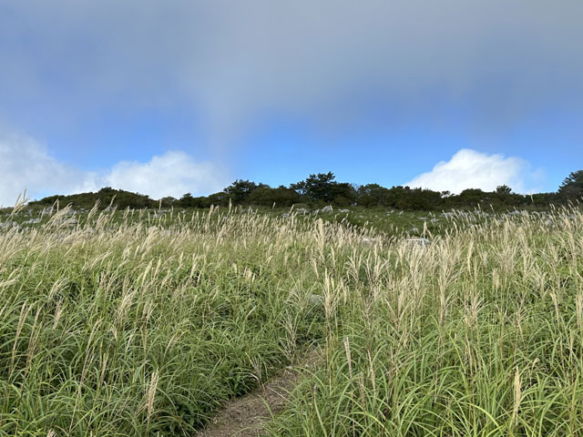 銀の波打つススキには少し時期早かったですが