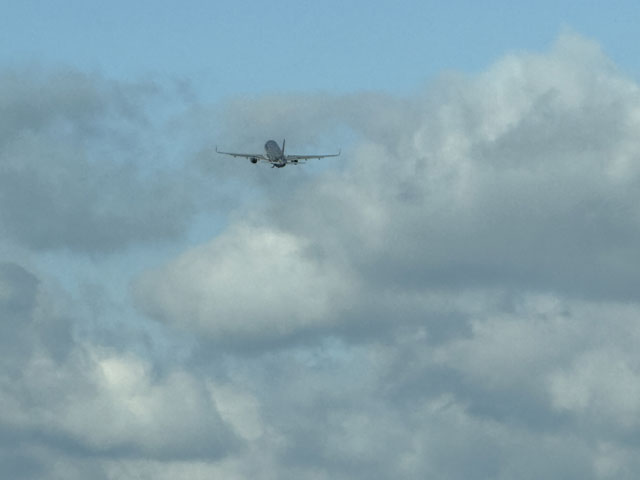外からは飛行機の中の人は見えないけど、飛行機の中からはわりあいはっきり外の人物確認できますね